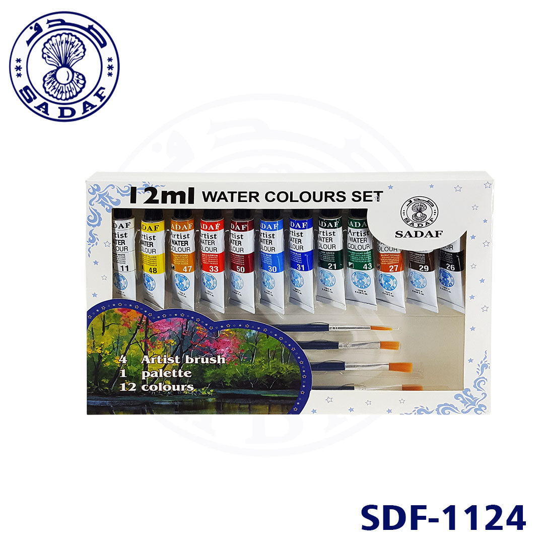 تتضمن مجموعة ألوان المياه SADAF هذه 12 أنبوبًا غنيًا بالألوان المائية، وفرشاة عالية الجودة، ولوحة خلط مريحة - مثالية للطلاب والمبتدئين والفنانين الهواة.