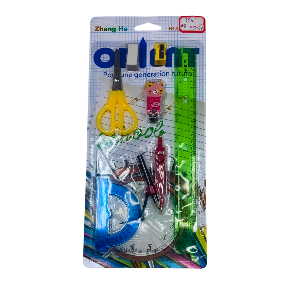 مجموعة مساطر من 8 قطع هي مجموعة أدوات هندسية وحرفية متكاملة للطلاب والمحترفين. تتضمن 4 مساطر أساسية، وبوصلة قوسية لرسم دوائر دقيقة، ومقص أظافر، ومقص عادي - جميعها مُجهزة لراحة الاستخدام اليومي.