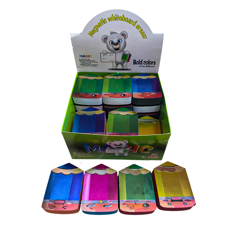 حسّن تجربة استخدامك للفصل الدراسي أو المكتب مع هذه الممحاة المغناطيسية للسبورة البيضاء على شكل قلم رصاص . تتميز بتصميمها الممتع والجذاب، وتوفر أداءً سلسًا وقاعدة مغناطيسية قوية لإبقائها في متناول يدك دائمًا.