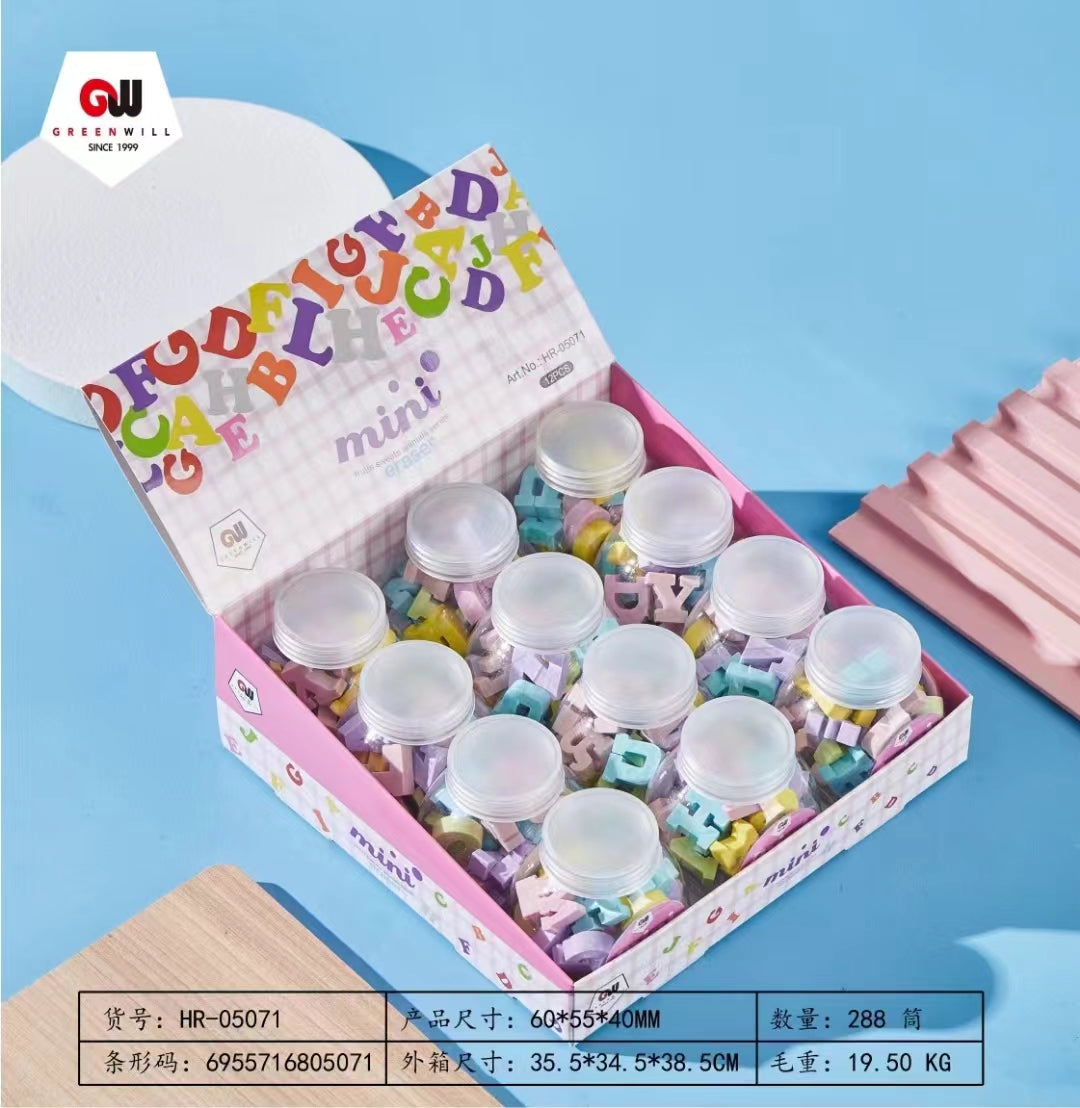 Introduce young learners to the world of letters with this Mini Alphabet Eraser Jar. Each eraser in the jar is crafted in the shape of an alphabet (A–Z), designed to make learning more engaging and playful. Made from high-quality, non-toxic rubber, these erasers provide clean, smudge-free erasing without damaging paper. The compact jar packaging keeps the erasers organized and hygienic—perfect for classrooms, activity kits, and gifting.